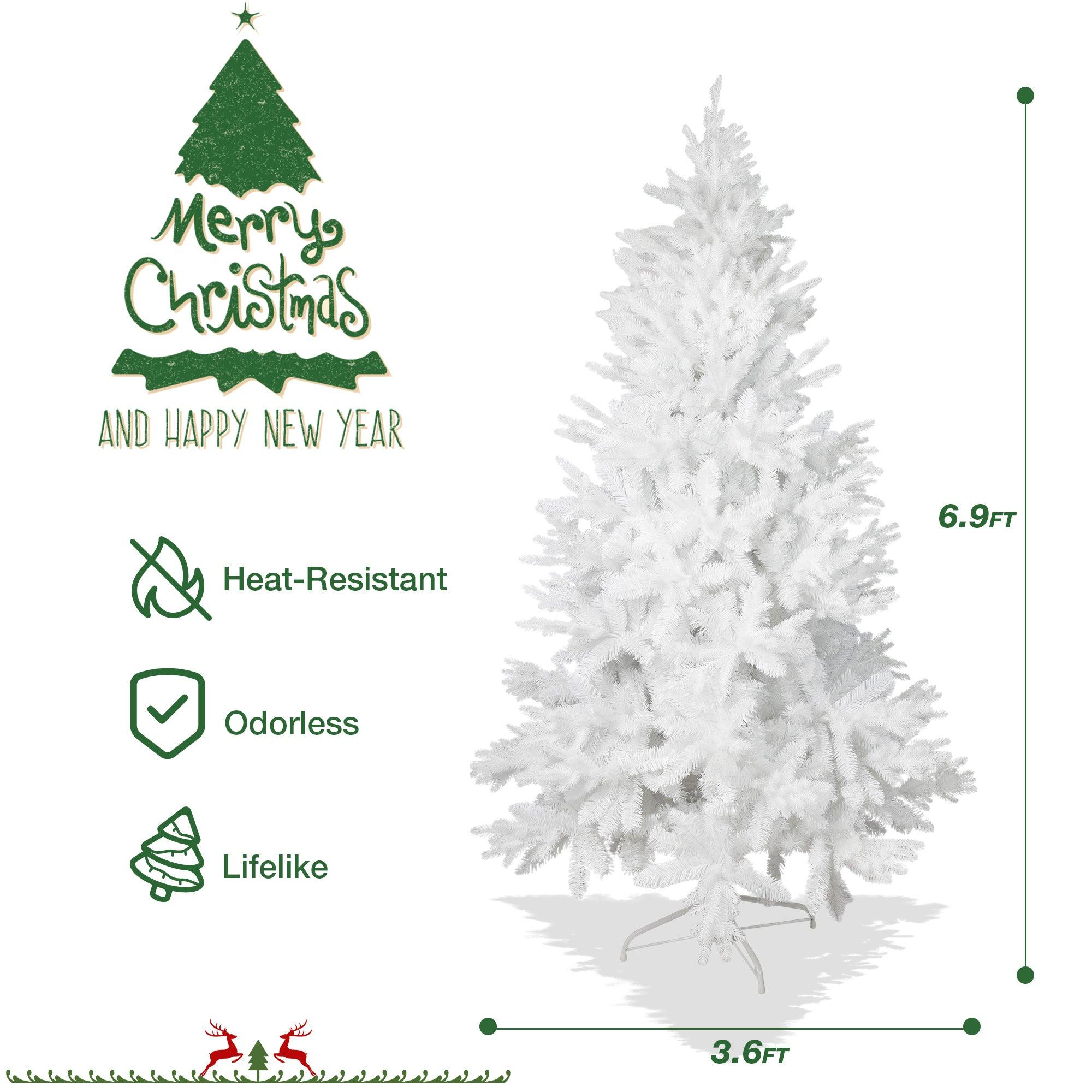 - With its 6.9FT height, this white artificial Christmas tree is ideal for larger spaces, events, and businesses