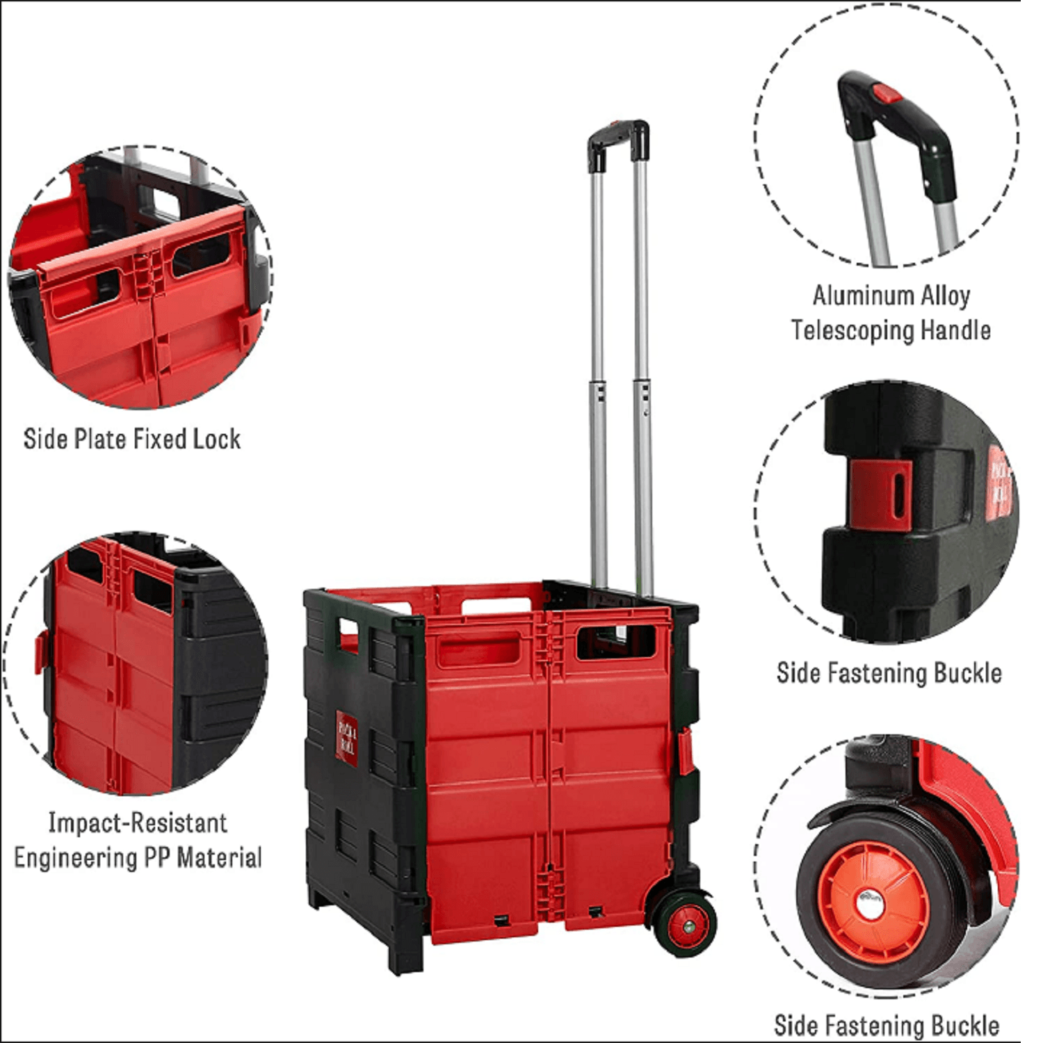 Durable Material for Great Bearing Capacity: Made of impact-resistant PP, the utility cart features better bearing capacity, environmentally friendly and lightweight; Pull handle made of aluminum, rust-proof and flexible. Makes it rugged and durable. The load-bearing capacity is 77 lbs when carrying goods