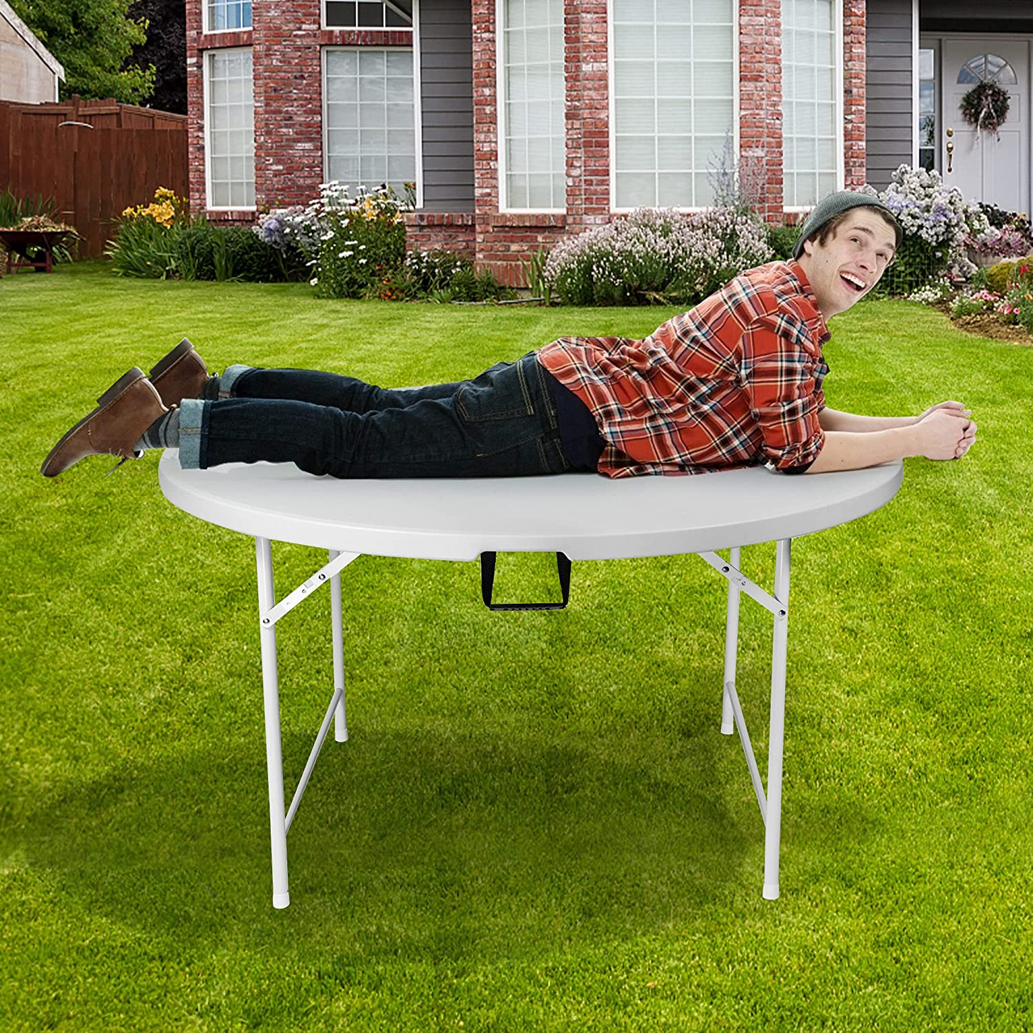 Fold Flat & Portable: This round table folds completely flat and occupies a little space to store. Great choice for camper, you can store the folded table in your RV or trunk and have a picnic with you family. Also can take the table to your friends’ home and enjoy playing card. Perfect for every mobile events.