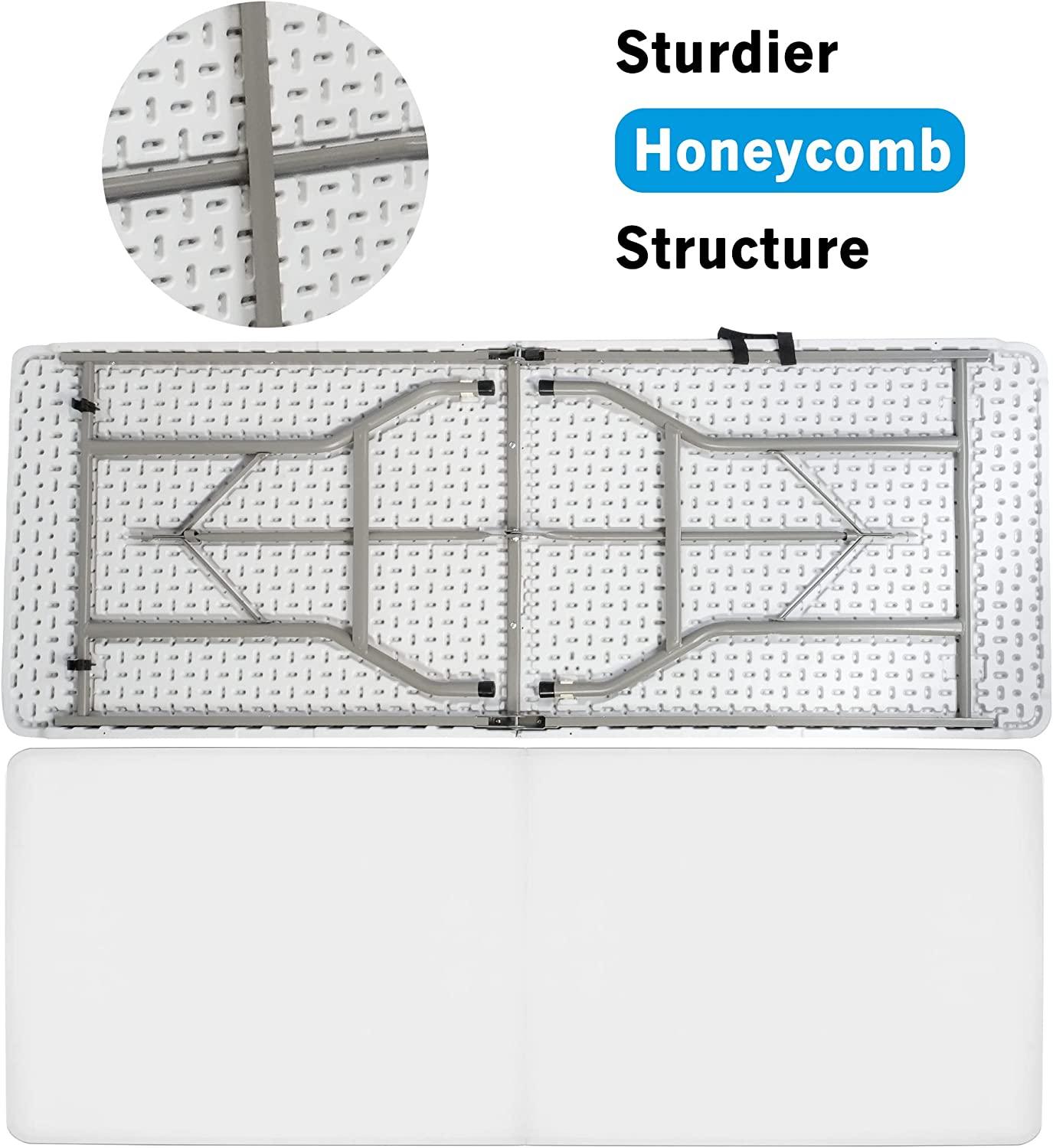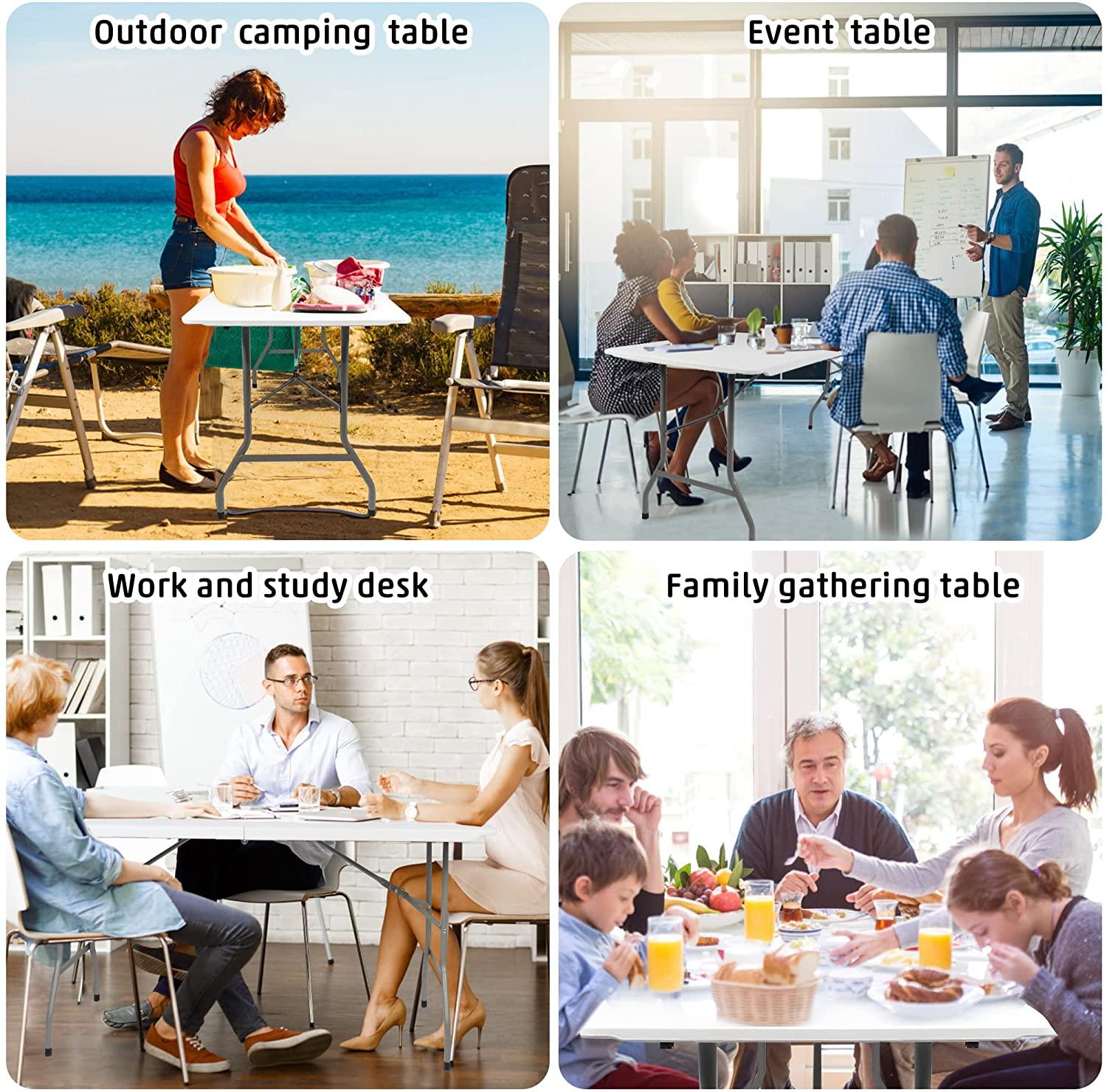 6FT Outdoor Folding Table, 71'' Event Commercial Table Fold-in-Half Camping Table w/Handle for Office, Beach, Picnic, Garden