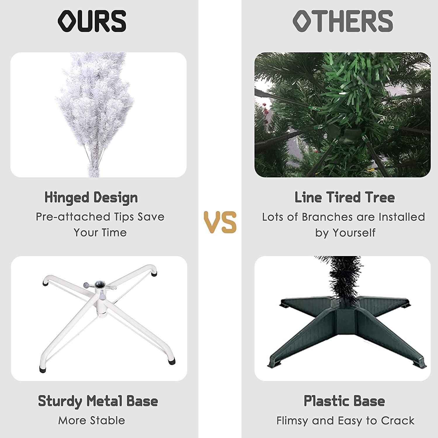 Eco-friendly Material: Christmas tree are made from high quality PVC material, which makes the tree looks more real and more full.