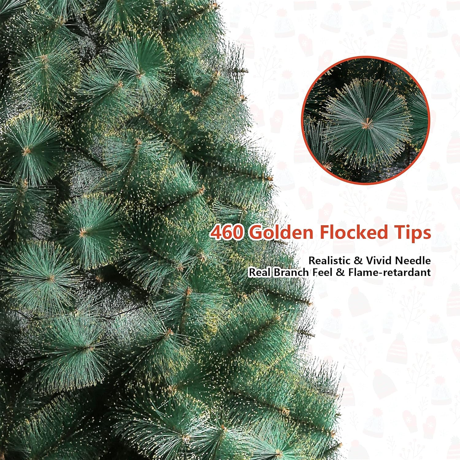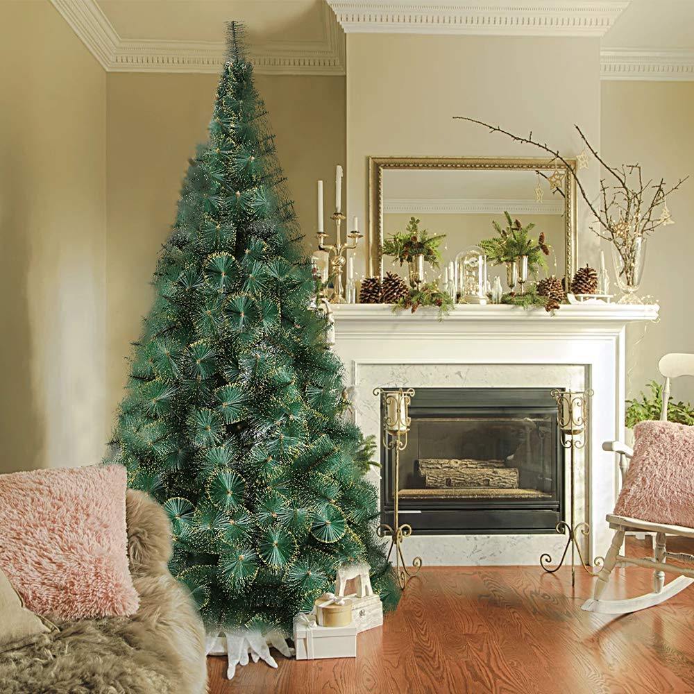 8' Classic Pine Artificial Christmas Tree Artificial Realistic Natural Branches with Solid Metal Stand with Golden Highlights