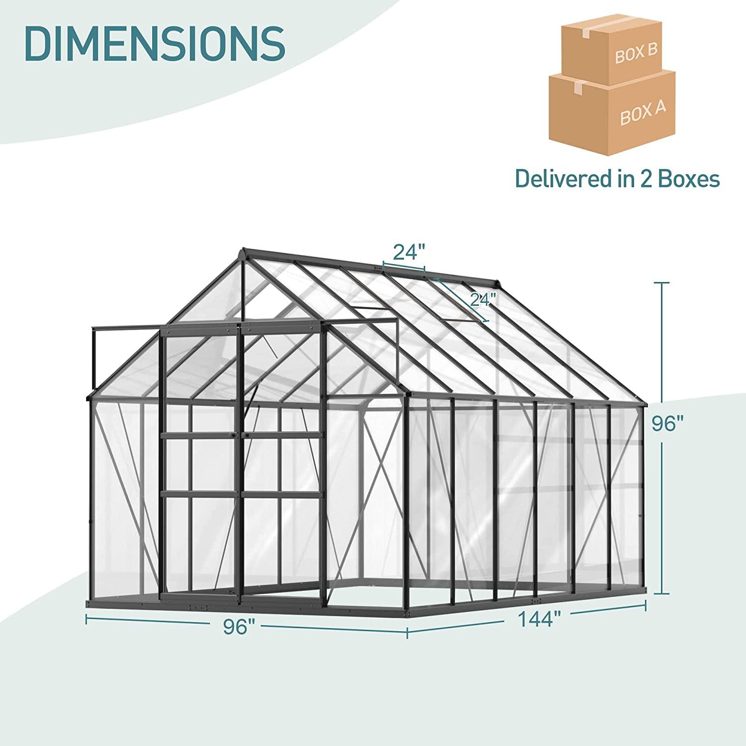 Perfect for Plants: Our greenhouse can help grow and nurture plants all year round, protecting them from the cold. It is perfect for vegetables, fruit, herbs, and flowers. The 8' x 12' space can accommodate enough plants and gardening tools to enjoy the fun of growing plants after assembly.