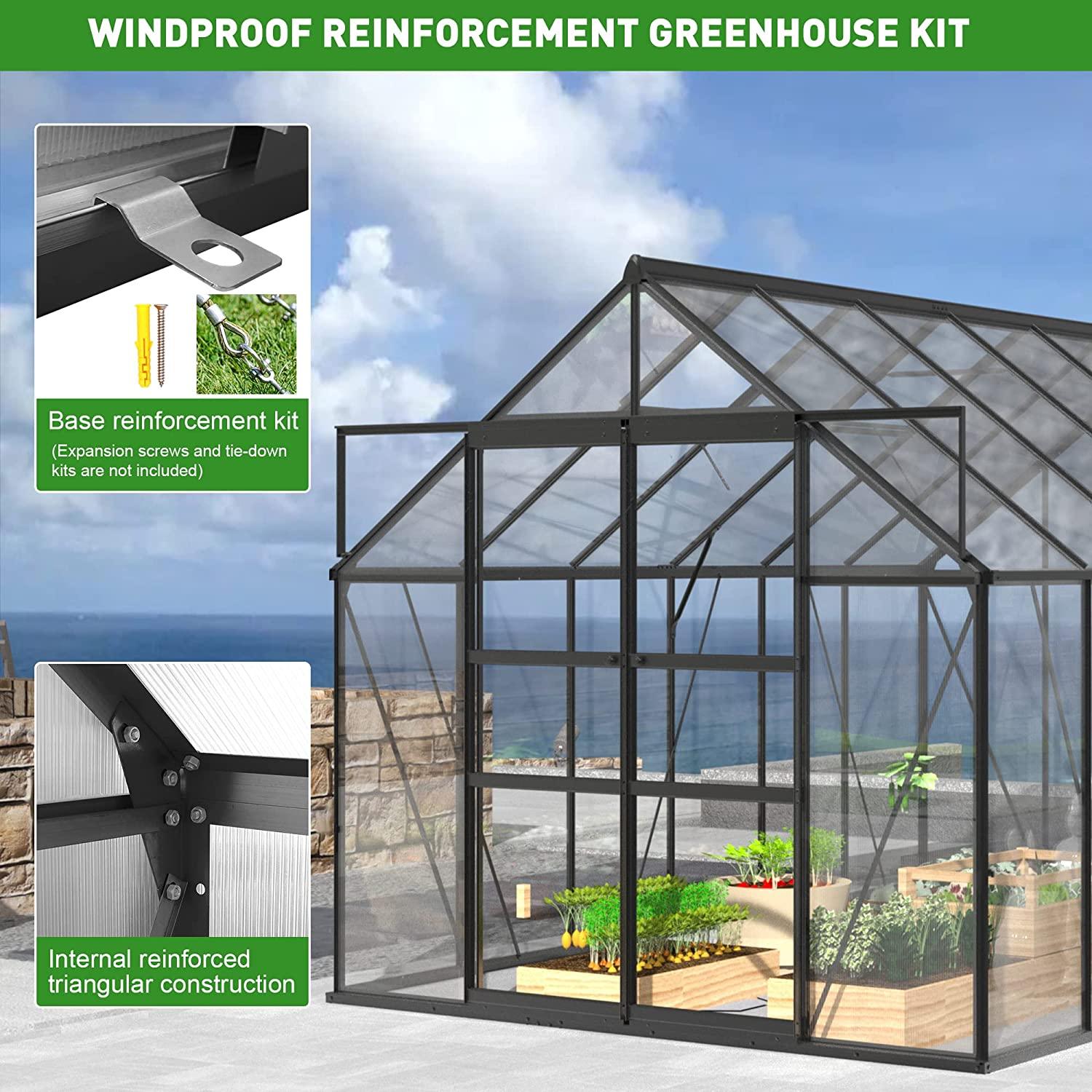 Stable and Durable: The outdoor greenhouse is equipped with heavy-duty galvanized base, which can be used with collision screws or additional binding kit to effectively improve the wind resistance and support the house frame. The greenhouse has added windproof clips to prevent the panels from being blown away by high winds.