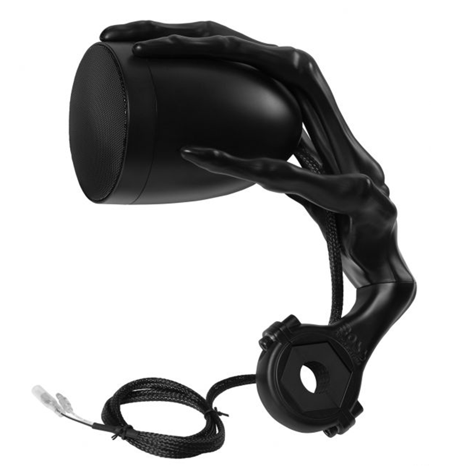 - 3-inch full-range weatherproof speakers with custom-tooled skeleton hand