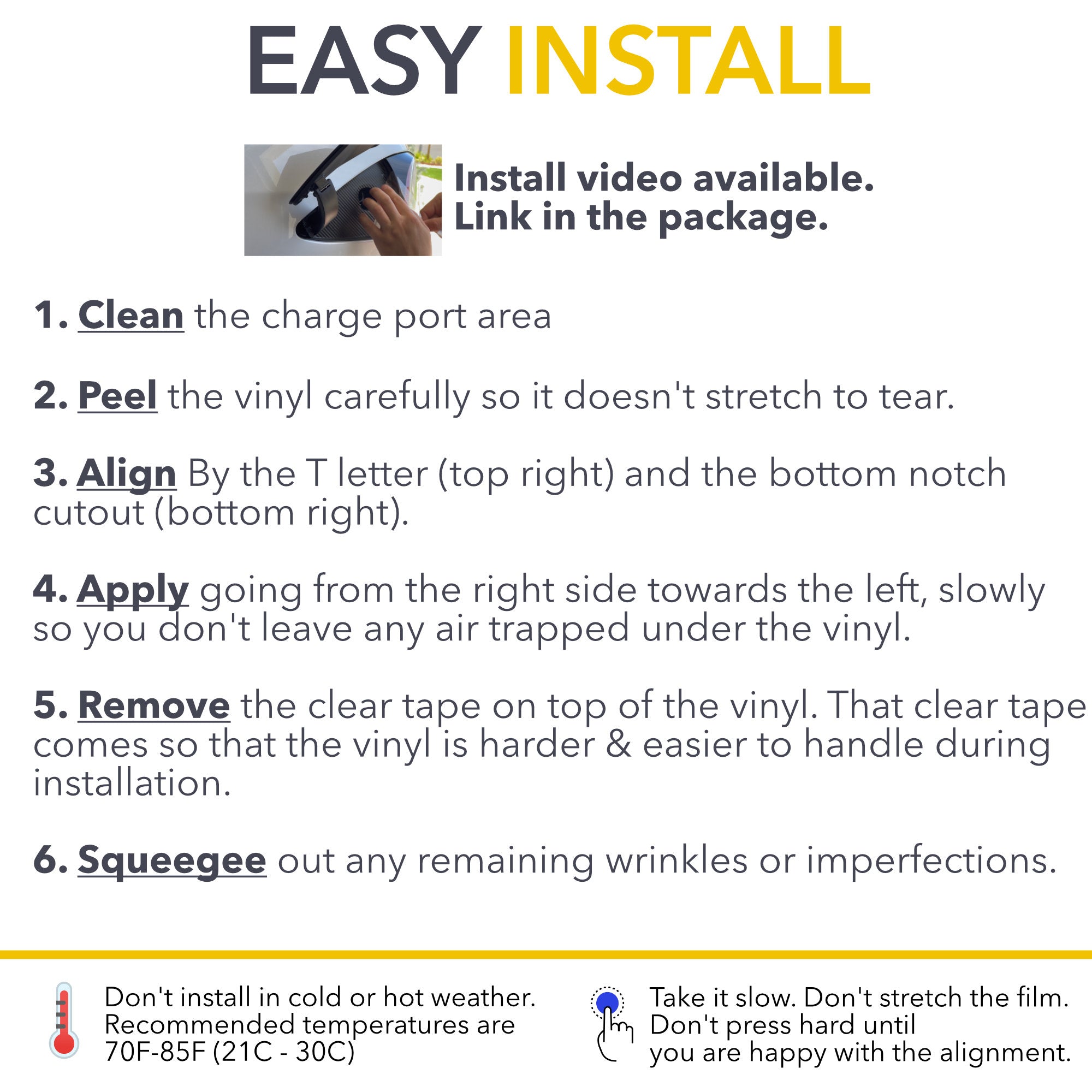 ⚡️ Custom Fit for Tesla Model S 2022-2024: This vinyl wrap is precisely designed to fit the charge port panel, ensuring a seamless and clean look. Its custom fit guarantees an exact match, offering a smooth finish that integrates perfectly with your vehicle's design.