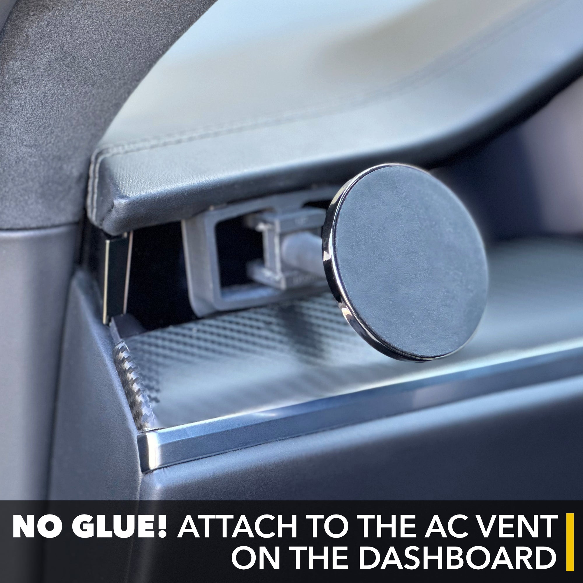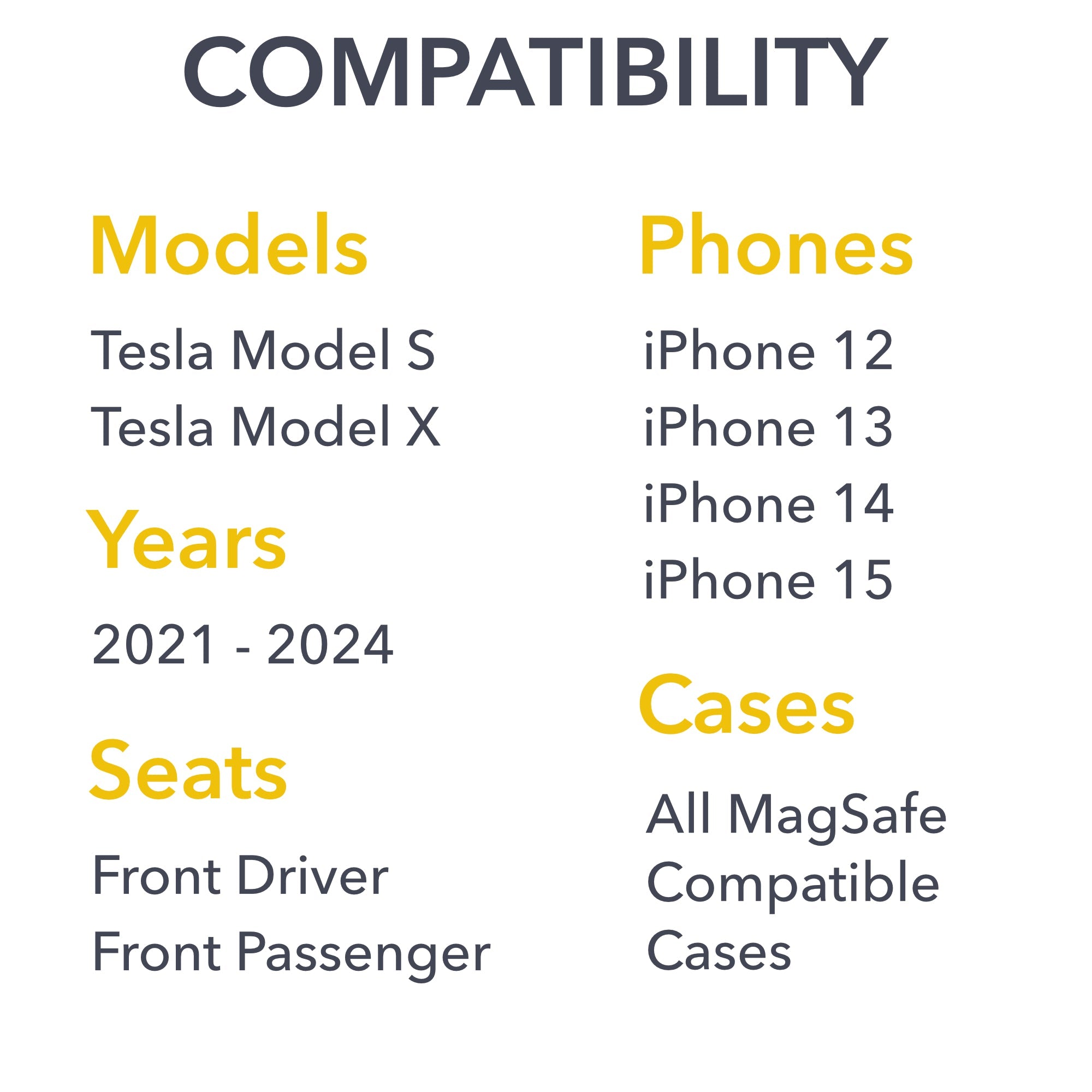 The TWRAPS Dashboard Magnetic Phone Mount for Tesla Model S and X (2021-2024) seamlessly integrates MagSafe technology to offer a secure, adhesive-free attachment for your iPhone. Designed for use by both the driver and the passenger, it ensures optimal visibility and access to your phone's features without obstructing the road view. Proudly made in the USA, it offers an easy, tool-free installation, making it an indispensable accessory for Tesla owners seeking convenience and safety.