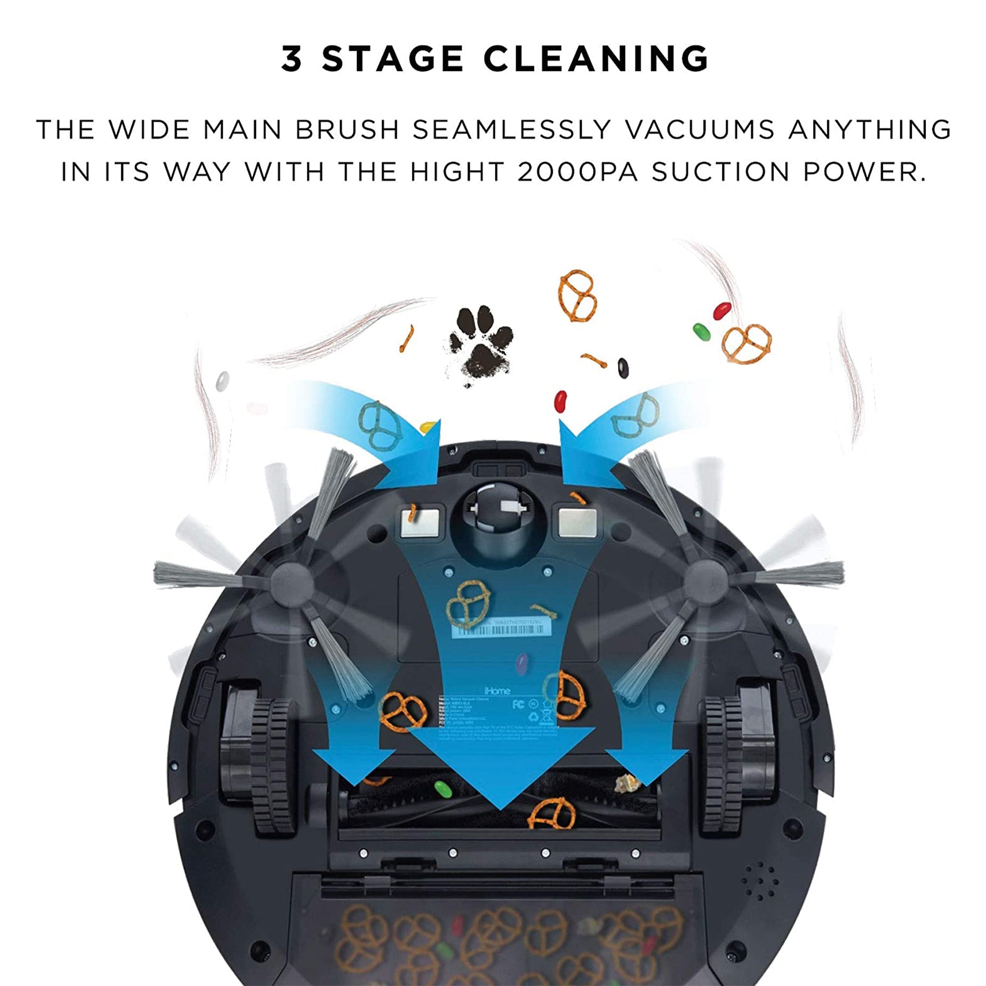 Featuring HomeMap Navigation technology that actively captures thousands of precise measurements to optimize coverage, vacuum purposefully, and logically vacuums in neat rows. Control the vacuum anywhere you are with the iHome App. Enjoy features that work around your life, including personalized scheduling suggestions and control with Alexa, Google, iHome Clean App, or Remote.