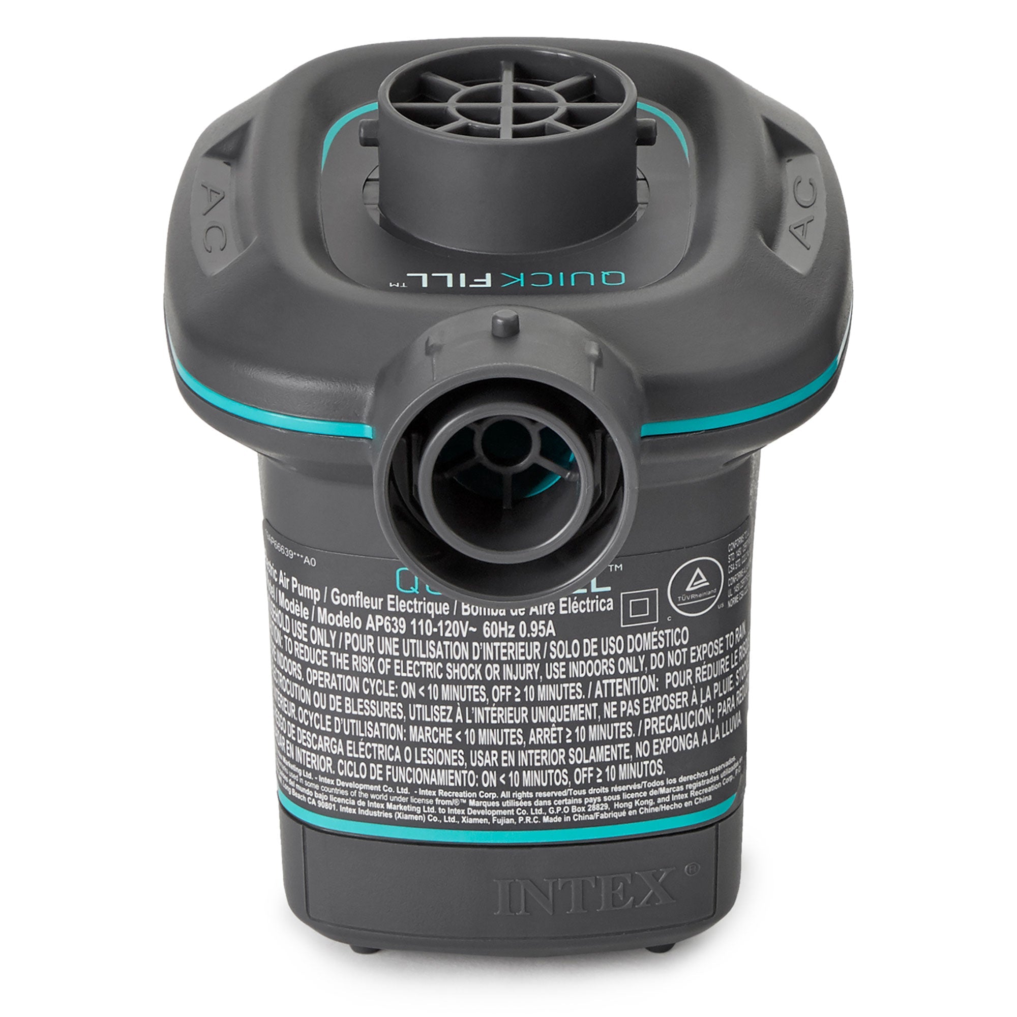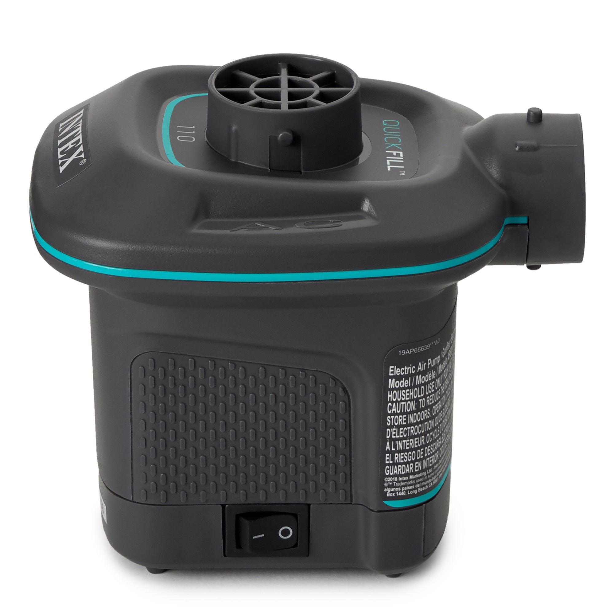 This air pump includes nozzles for 3 common sizes providing maximum function. It's great for inflating your raft in no time, and it plugs into a standard household electrical outlet, so it's convenient to use.