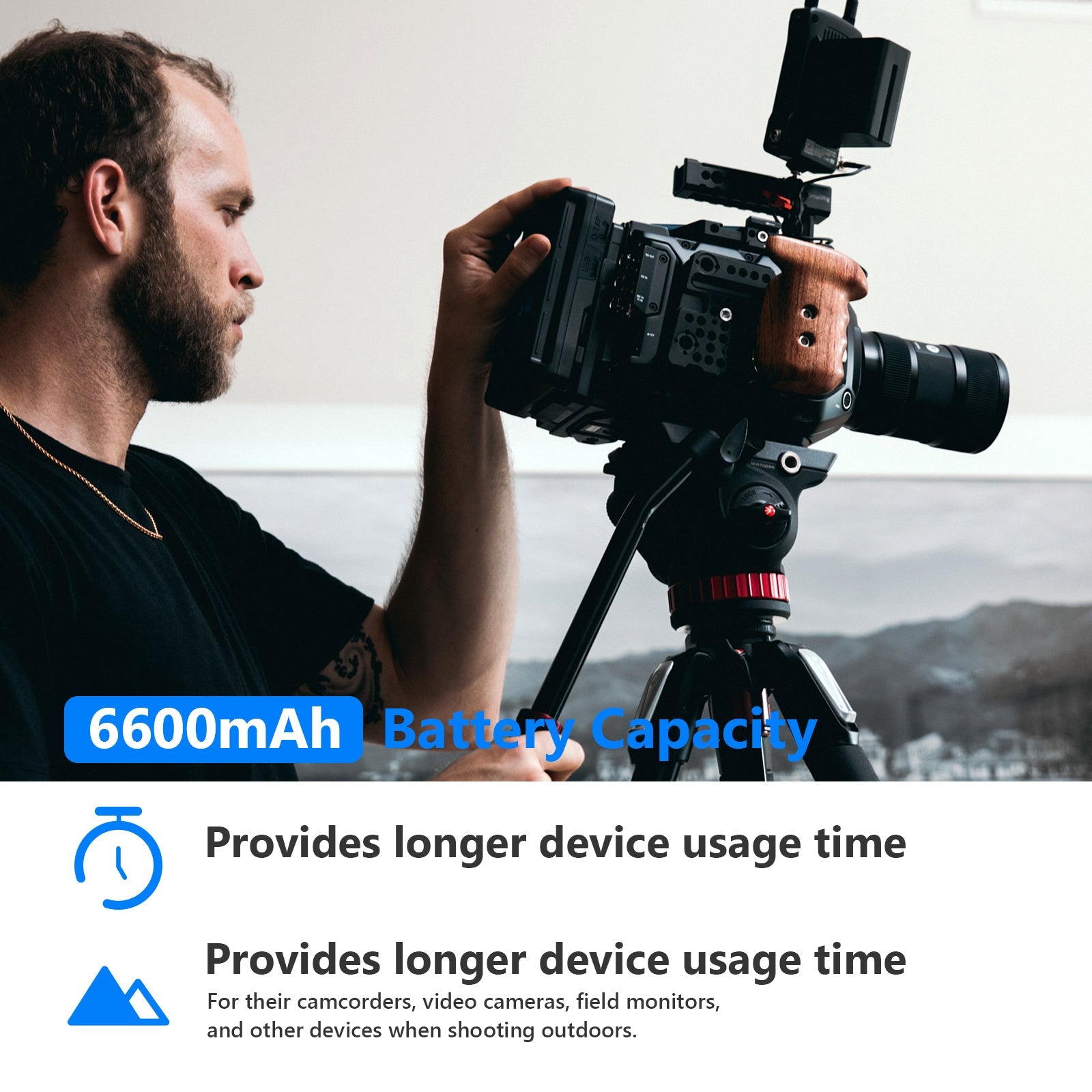 • The four-pack 6600mAh NP-F970 replacement batteries are a great companion to travel photographers and video creators who need long-lasting battery power for camcorders, video cameras, field monitors, and other devices when shooting outdoors.