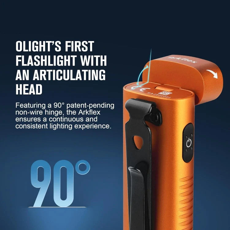 Trailblazing 90° Articulating Head: Olight's First Flashlight with a 90° Articulating Head, which passes through 10,000 swivel tests -- allowing you to adjust it to a specific angle for precise lighting flexibly.