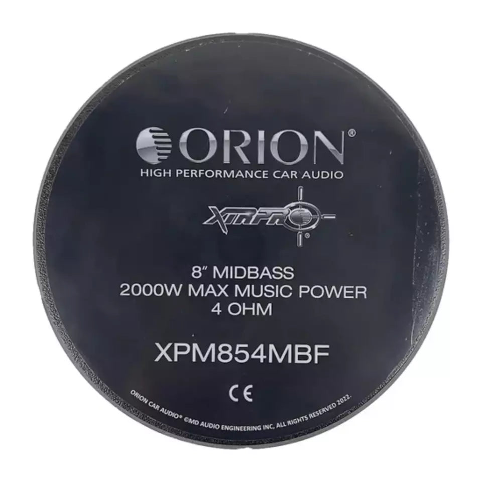 - Unleash the Power of Sound: The ORION XPM854MBF 8" Midbass Speakers are your gateway to experiencing audio in its truest form. Whether you're enjoying a leisurely drive or hitting the road for an adventure, these speakers empower you to feel the music like never before. With commanding bass, pristine midbass reproduction, and an elegant design, they redefine the way you engage with your music. Elevate your audio journey with the ORION XPM854MBF and unlock a world of immersive and powerful sound.