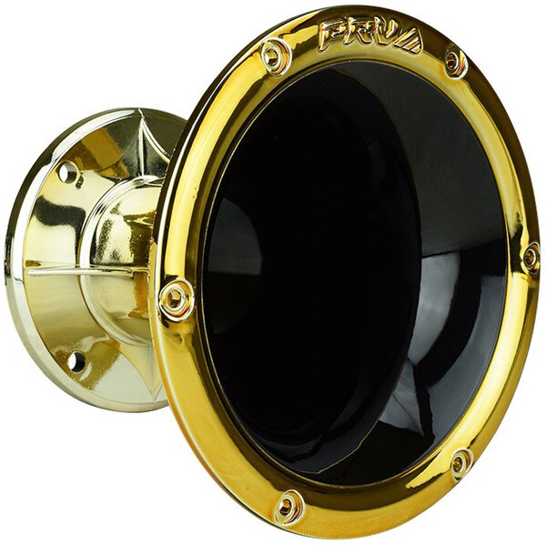 Add a little color to your sound, in a good way, with PRV Audio's WGP14-50 gold and black finished exponential horn. A standard 4-bolt flange is compatible with most 2" compression drivers. This horn, constructed from non-resonant ABS plastic and finished in a UV resistant coating, is perfect for outdoor or automotive use. Acoustic loading is maintained down to 600 Hz.