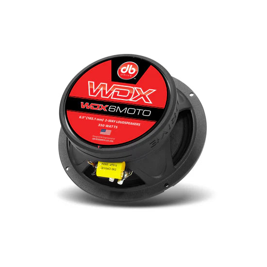 "Rev up your sound with DB Drive's WDXMOTO Series Speakers - the horsepower your music deserves!" Introducing the DB Drive WDX6MOTO 6.5in 2-Way Loud Speakers, where power meets precision! Elevate your audio experience with these incredible speakers from the WDXMOTO Series. Designed with high efficiency and ultra-lightweight treated cones, these speakers deliver unparalleled clarity and depth to every beat. Their IP52 Weather Resistant feature ensures durability and longevity, making them perfect for any adventure, rain or shine. With a frequency response of 80Hz - 21KHz, these speakers capture every nuance of your favorite tunes. And with a maximum power of 350 Watts and a sensitivity of 103.5dB, get ready to feel the music like never before. Upgrade your ride with the DB Drive WDX6MOTO 6.5in 2-Way Loud Speakers and let the music take you on an unforgettable journey!